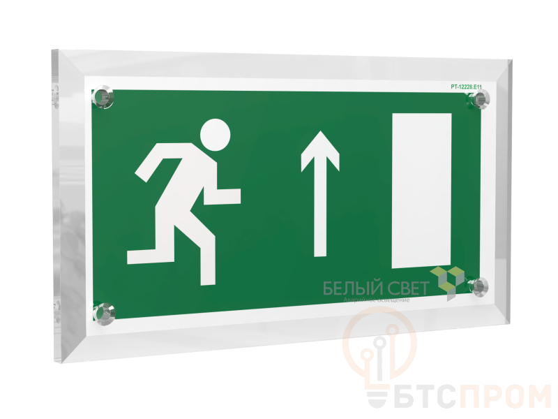 Знак безопасности "Направление к эвакуационному выходу прямо", габаритные размеры 320х170 мм, фактические размеры 300х150 мм, сигнальный цвет - зеленый, контрастный цвет - белый