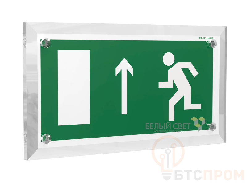 Знак безопасности PT-17328.E12 "Напр. к эвакуационному выходу прямо (лев.)" Белый свет a22472 фото в каталоге от BTSprom.by
