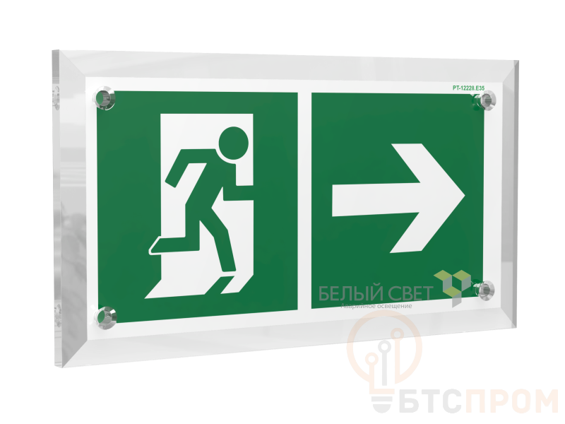 Знак безопасности "Направление к эвакуационному выходу направо", габаритные размеры 320х170 мм, фактические размеры 300х150 мм, сигнальный цвет - зеленый, контрастный цвет - белый