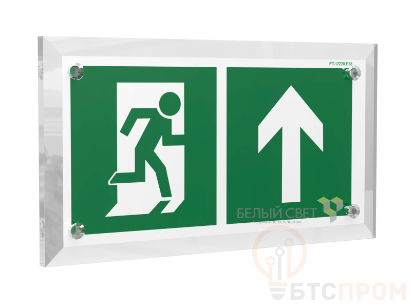 Знак безопасности PT-17328.E38 "Напр. к эвакуационному выходу прямо" Белый свет a22483 фото в каталоге от BTSprom.by