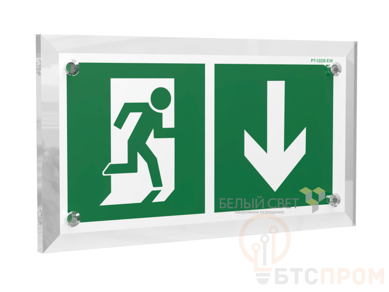 Знак безопасности "Указатель двери эвакуационного выхода (правосторонний)", габаритные размеры 320х170 мм, фактические размеры 300х150 мм, сигнальный цвет - зеленый, контрастный цвет - белый