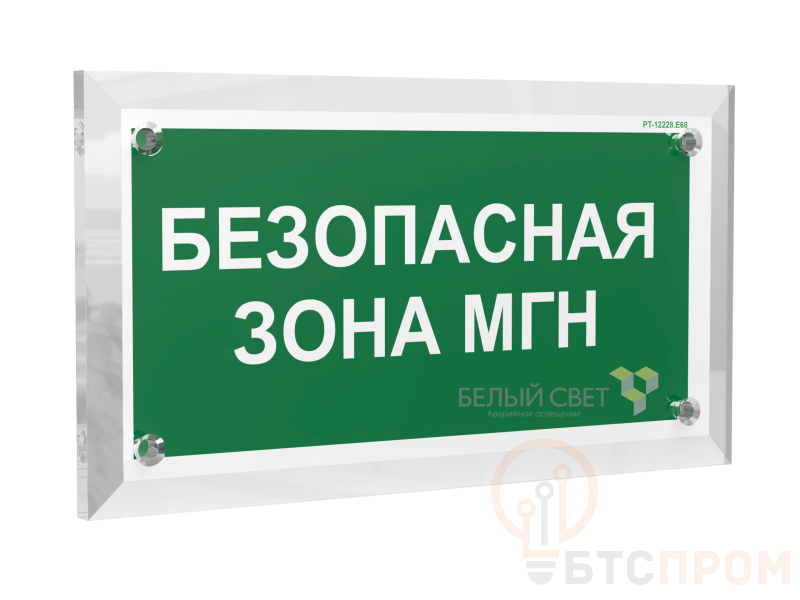 Знак безопасности "Безопасная зона для маломобильных групп", габаритные размеры 320х170 мм, фактические размеры 300х150 мм, сигнальный цвет - зеленый, контрастный цвет - белый