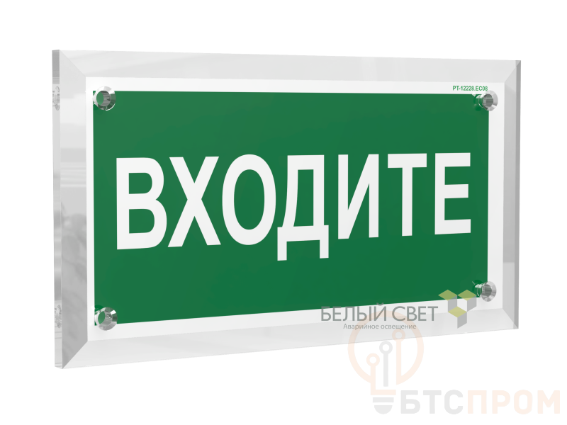 Знак безопасности "Входите", габаритные размеры 320х170 мм, фактические размеры 300х150 мм, сигнальный цвет - зеленый, контрастный цвет - белый