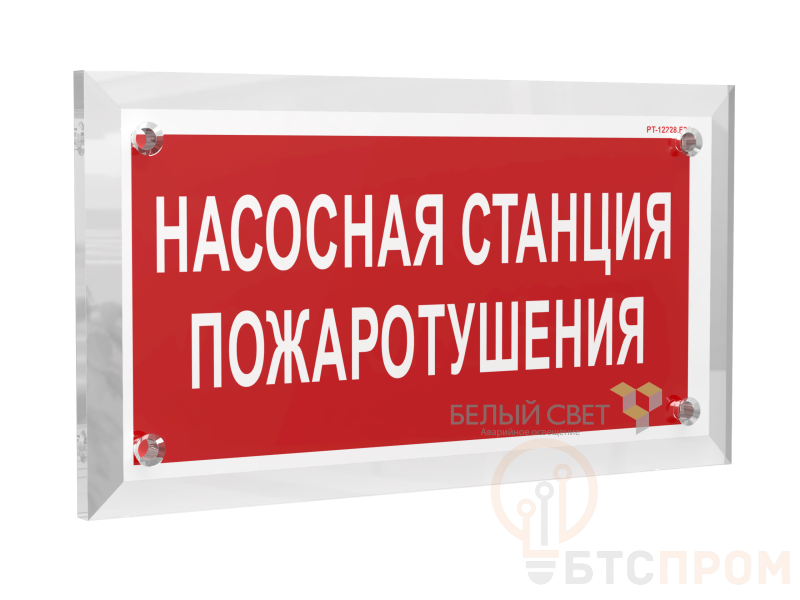 Знак безопасности "Насосная станция пожаротушения", габаритные размеры 320х170 мм, фактические размеры 300х150 мм, сигнальный цвет - красный, контрастный цвет - белый