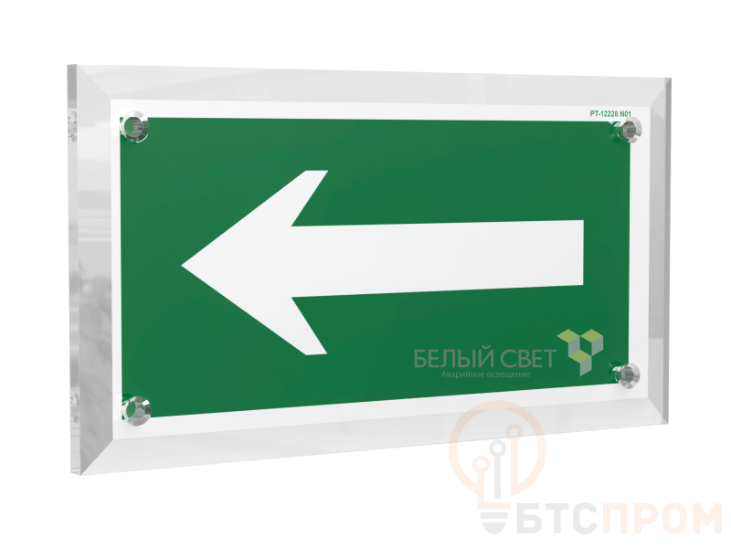 Знак безопасности "Направляющая стрелка", габаритные размеры 320х170 мм, фактические размеры 300х150 мм, сигнальный цвет - зеленый, контрастный цвет - белый