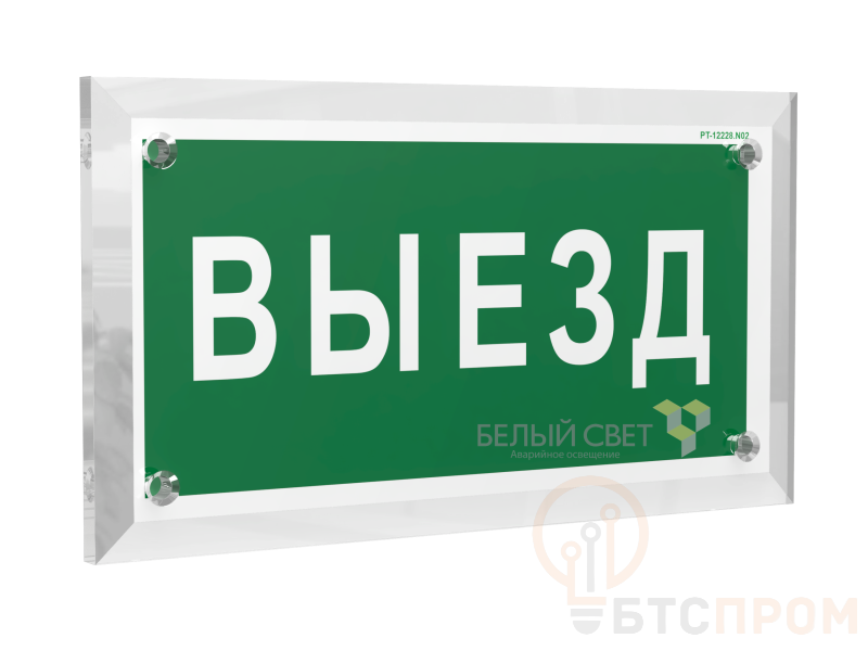 Знак безопасности "Указатель выезда", габаритные размеры 320х170 мм, фактические размеры 300х150 мм, сигнальный цвет - зеленый, контрастный цвет - белый