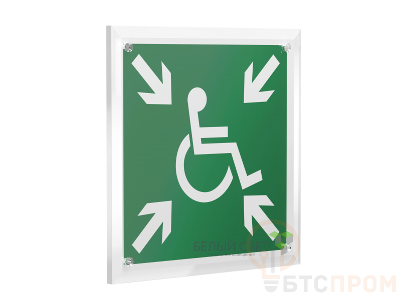 Знак безопасности "Пункт (место) сбора МГН (безопасная зона МГН)", габаритные размеры 220х220 мм, фактические размеры 200х200 мм, сигнальный цвет - зеленый, контрастный цвет - белый