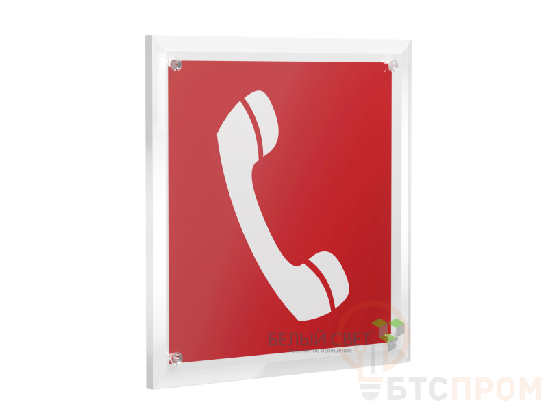 Знак безопасности "Телефон для использования при пожаре (в том числе телефон прямой связи с пожарной охраной)", габаритные размеры 220х220 мм, фактические размеры 200х200 мм, сигнальный цвет - красный, контрастный цвет - белый