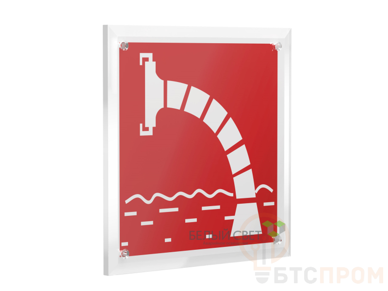 Знак безопасности "Пожарный водоисточник", габаритные размеры 220х220 мм, фактические размеры 200х200 мм, сигнальный цвет - красный, контрастный цвет - белый