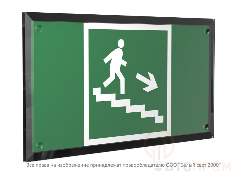 Знак безопасности PT-32178-Black.E13 "Напр. к эвак.выходу по лестн. вниз (прав.) " Белый свет a32706