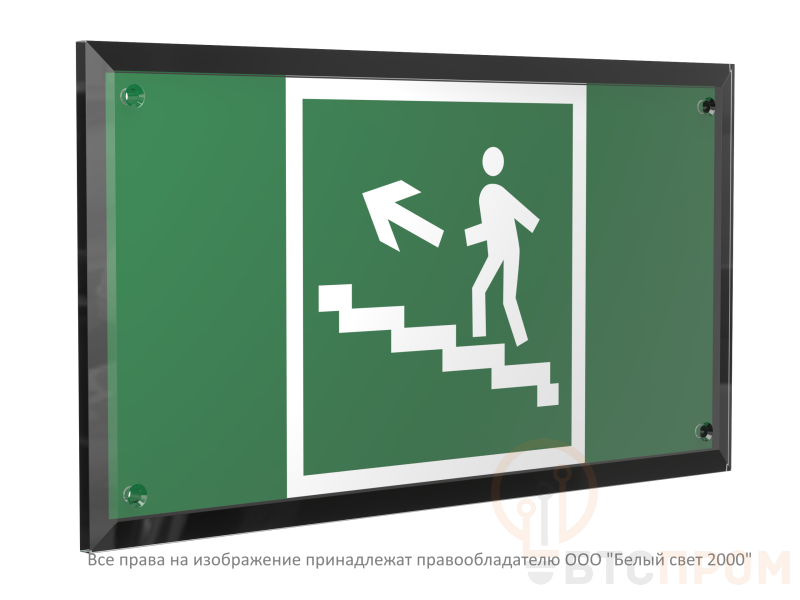Знак безопасности PT-32178-Black.E16 "Напр. к эвак.выходу по лестн. вверх (лев.) " Белый свет a32709