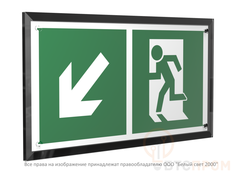 Знак безопасности PT-32178-Black.E33 "Напр. к эвакуационному выходу налево вниз " Белый свет a32716 фото в каталоге от BTSprom.by