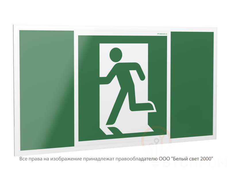 Знак относится к классу фотолюминесцентных и имеет белое свечение. В условиях нормального освещения он накапливает световую энергию, а при отключении электроэнергии или задымлении автоматически начинает светиться ровным белым светом, четко обозначая путь к эвакуации. Это делает его незаменимым элементом системы безопасности в темное время суток или в аварийных ситуациях. Строгий и понятный пиктограммный дизайн обеспечивает мгновенное визуальное восприятие даже на большом расстоянии.