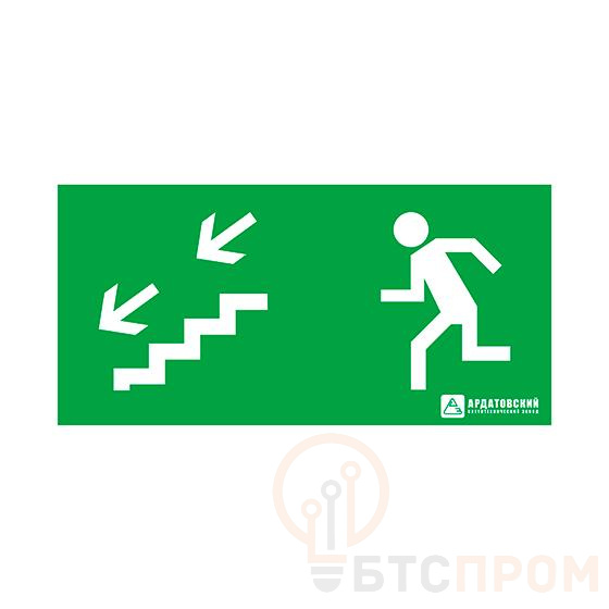 Знак эвакуационный "Эвакуационный выход по лестнице налево вниз" (200х100) Ардатов 1010100200 фото в каталоге от BTSprom.by