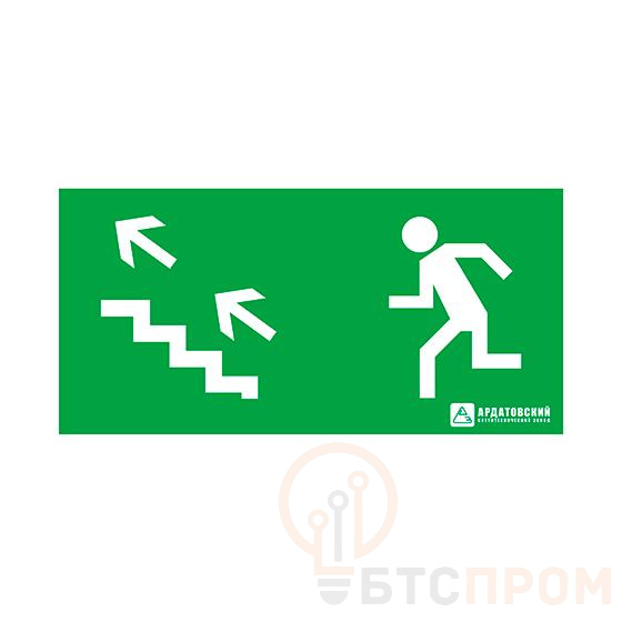 Знак эвакуационный "Эвакуационный выход по лестнице налево вверх" (200х100) Ардатов 1012100200 фото в каталоге от BTSprom.by