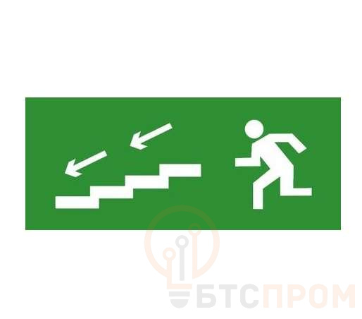 Эвакуационный знак ЭП13 По лестнице вниз налево 140x280 мм.