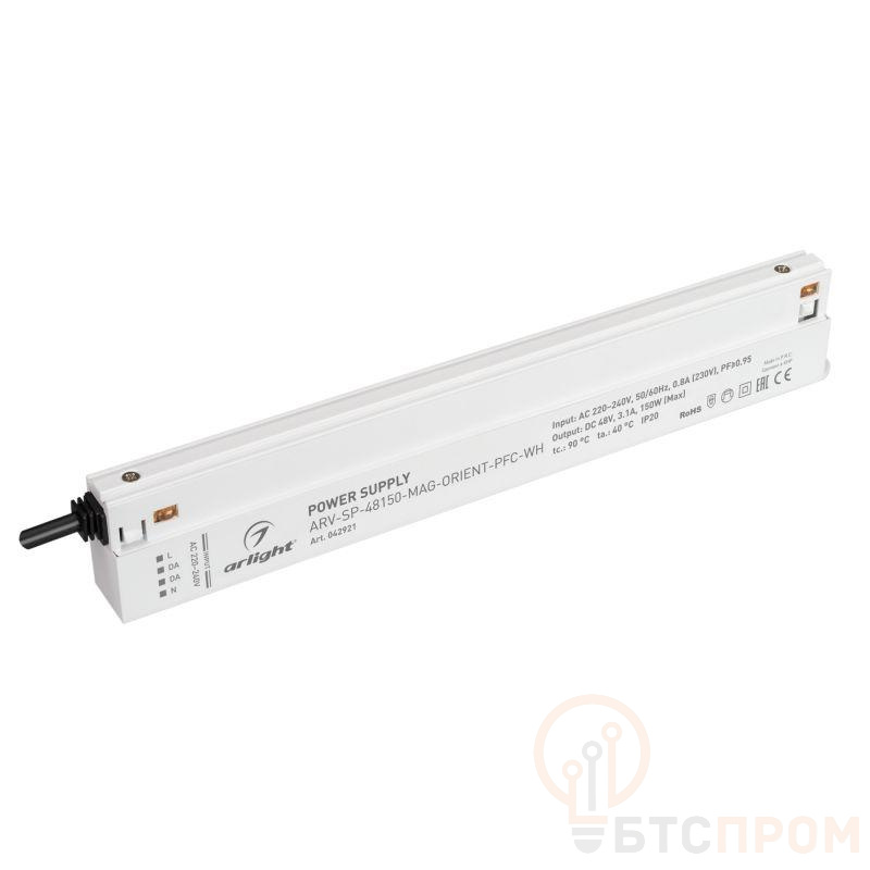 Источник напряжения с гальванической развязкой для для магнитной системы. Входное напряжение 220-240 VAC. Выходные параметры: 48 В, 3.1 А, 150 Вт. Встроенный PFC >0,95. Сверхтонкий пластиковый корпус IP20. Рабочая температура -25…+40C?. Габаритные размеры длина 268 мм, ширина 22 мм, высота 44 мм. Гарантийный срок 5 лет.