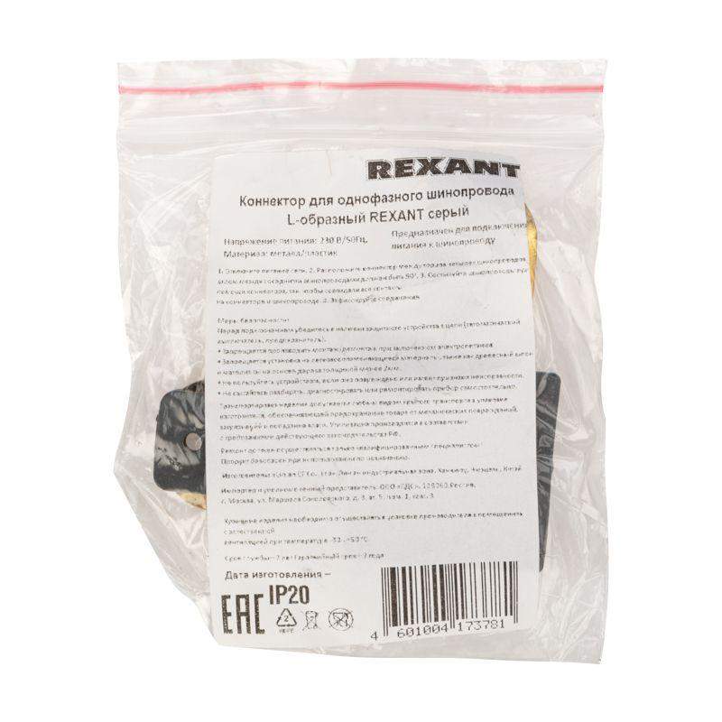 Коннектор для однофазного шинопровода L-образ. сер. Rexant 612-018 фото в каталоге от BTSprom.by