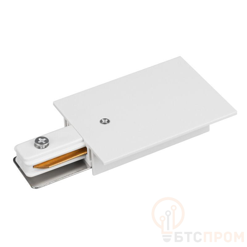 Концевой коннектор для подключения питания белого цвета. 110х60х20мм. При использовании с треками и аксессуарами другой серии возможно отличие по цвету.