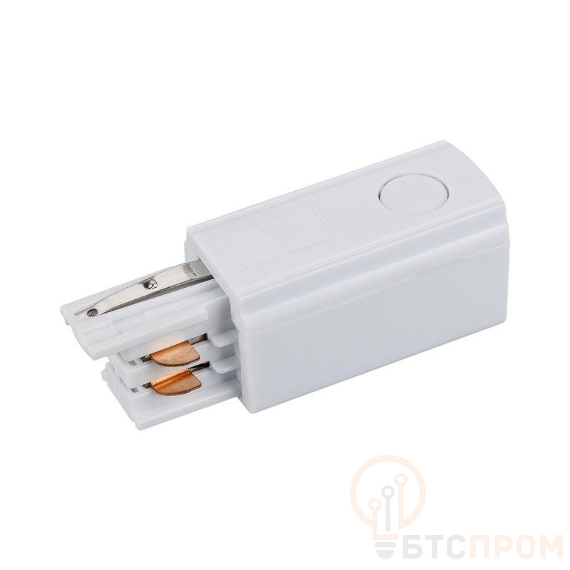 Коннектор-заглушка для подачи питания в треки 4TR, левая (определение левого коннектора происходит относительно контакта заземления системы). Цвет белый. Длина 65мм (99мм с разъемом). При использовании с треками и аксессуарами другой серии возможно отличие по цвету.