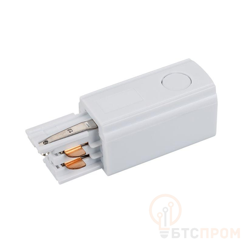 Коннектор-заглушка для подачи питания в треки 4TR, правая (определение правого коннектора происходит относительно контакта заземления системы). Цвет белый. Длина 65мм (99мм с разъемом). При использовании с треками и аксессуарами другой серии возможно отличие по цвету.