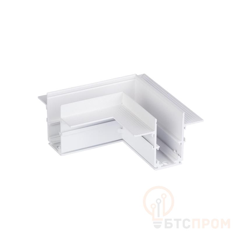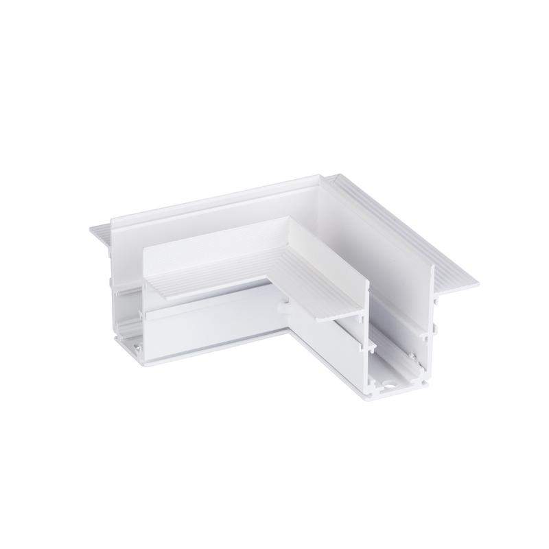 Угловой коннектор горизонтальный для шинопровода однофазного Vitaluce белого цвета. Угловой соединитель шинопровода - часть трековой системы освещения, служит для создания прямого угла из трековых шинопроводов.