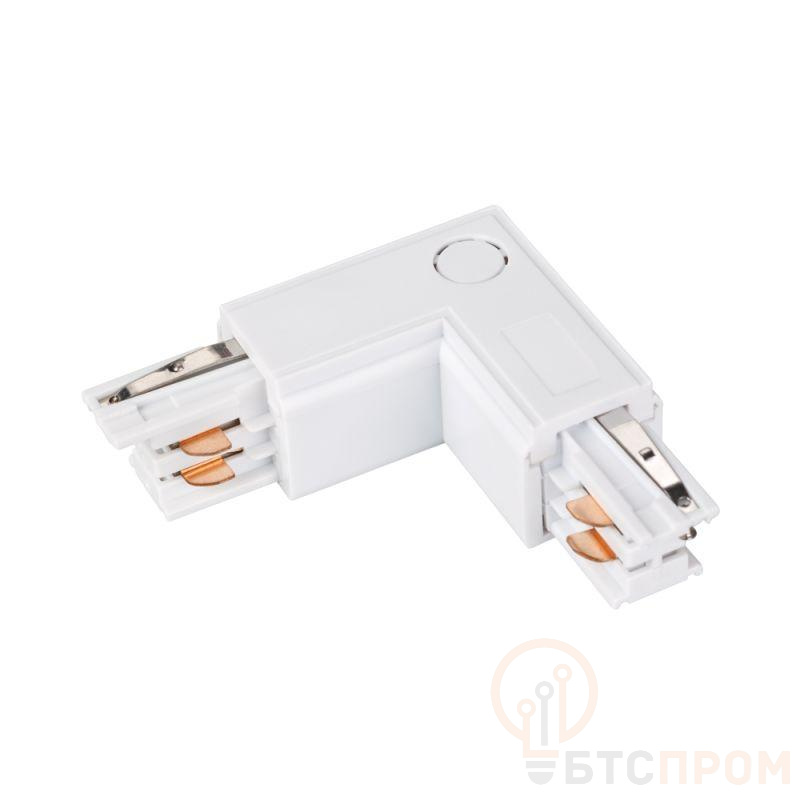 Угловой коннектор 90 градусов, питание по внешней стороне (определение необходимого коннектора происходит относительно контакта заземления системы). Цвет белый. 99х99х33 мм с контактами, 66х66х33 мм без контактов. При использовании с треками и аксессуарами другой серии возможно отличие по цвету.