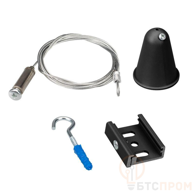 Тросовый подвес с пластиковой чашкой O36x47мм для треков 4TR. Длина троса 3 м. Цвет черный. Выдерживает вес максимум 15 кг. В комплекте трос, чаша, скоба и крюк. Совместим только с шинопроводом серии D3P.