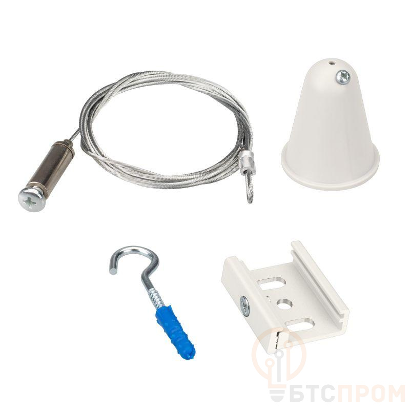 Тросовый подвес с пластиковой чашкой O36x47мм для треков 4TR. Длина троса 3 м. Цвет белый RAL9010. Выдерживает вес максимум 15 кг. В комплекте трос, чаша, скоба и крюк. Совместим только с шинопроводом серии D3P.