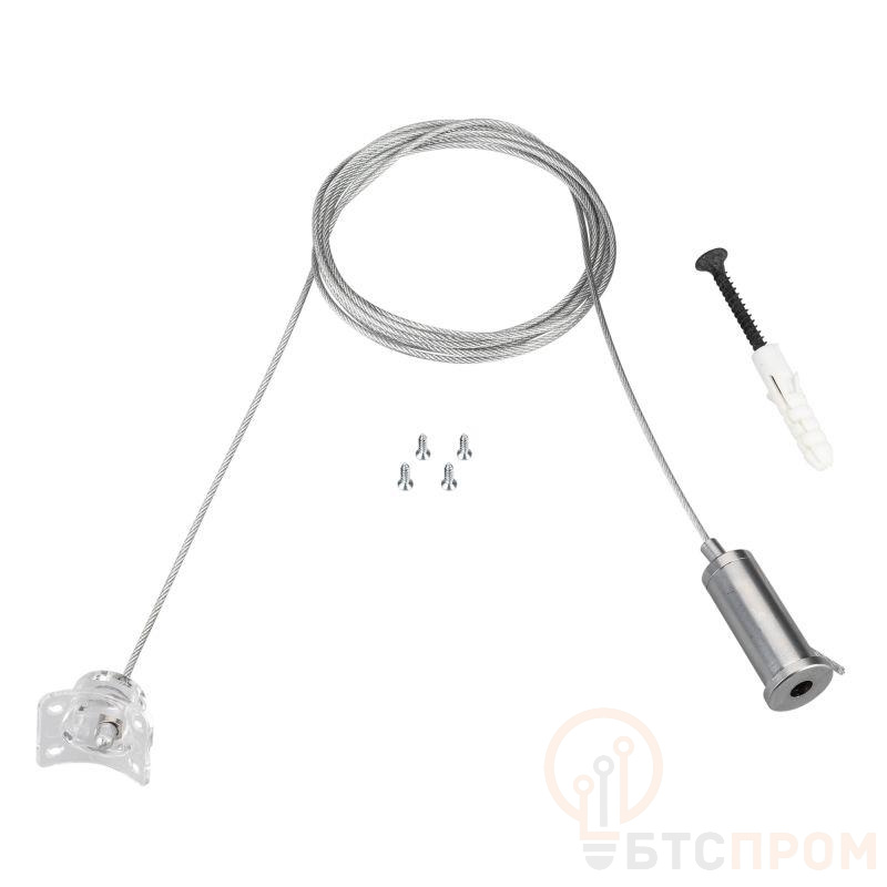 Набор для подвесного монтажа светильников серии FLEX-TUBE с прозрачными монтажными клипсами и винтами. Длина троса 2000 мм.