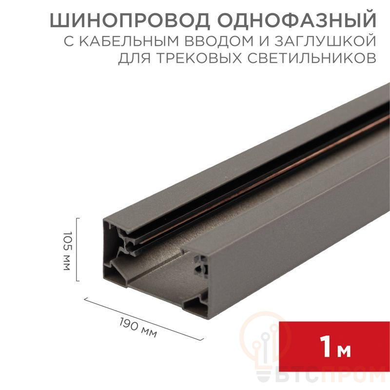Шинопровод однофазный L1000 с кабельным вводом и заглушкой для трековых светильников сер. Rexant 612-003