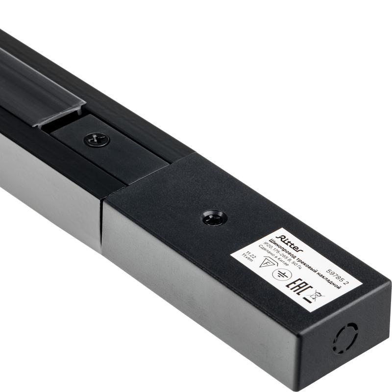 Шинопровод трековый накладной 1ф ARTLINE с питанием и заглушкой 1м алюм./медь с держателями с пластиковой планкой черн. Ritter 59785 2