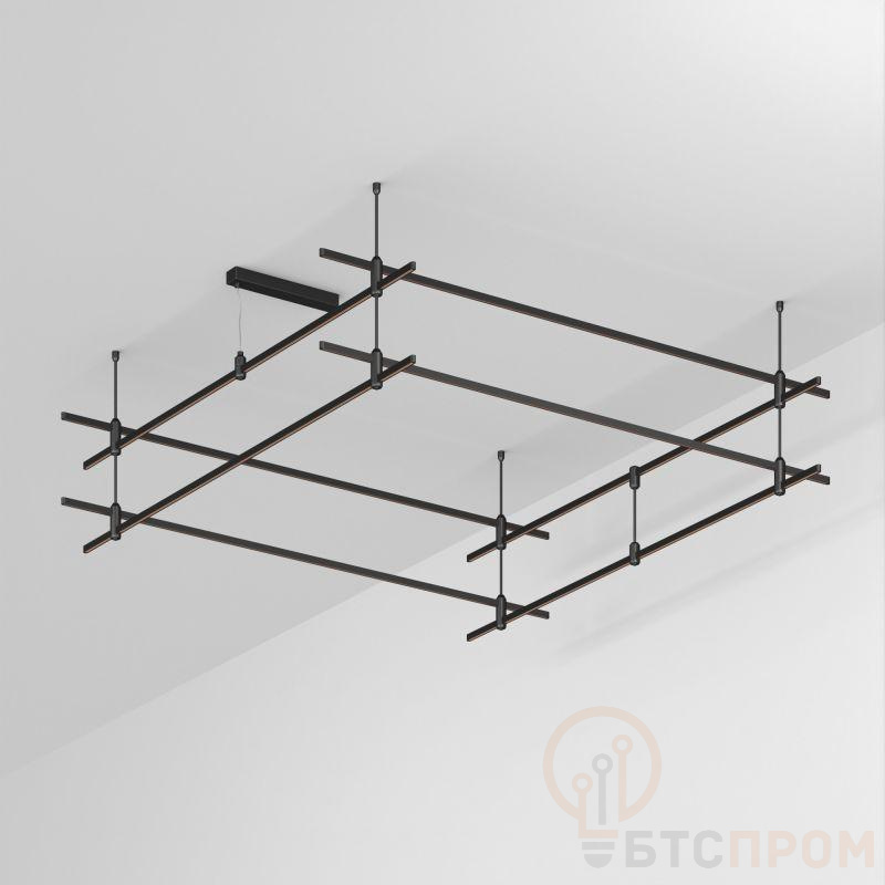 Подвесная конструкция APRIORI, форма параллелепипед. В комплекте треки с аксессуарами и жесткими подвесами длиной 400 мм. DC48V. Материал алюминий, цвет черный. Размер ДxШxВ: 2000x2000x300мм. Светильники и источники питания приобретаются отдельно.