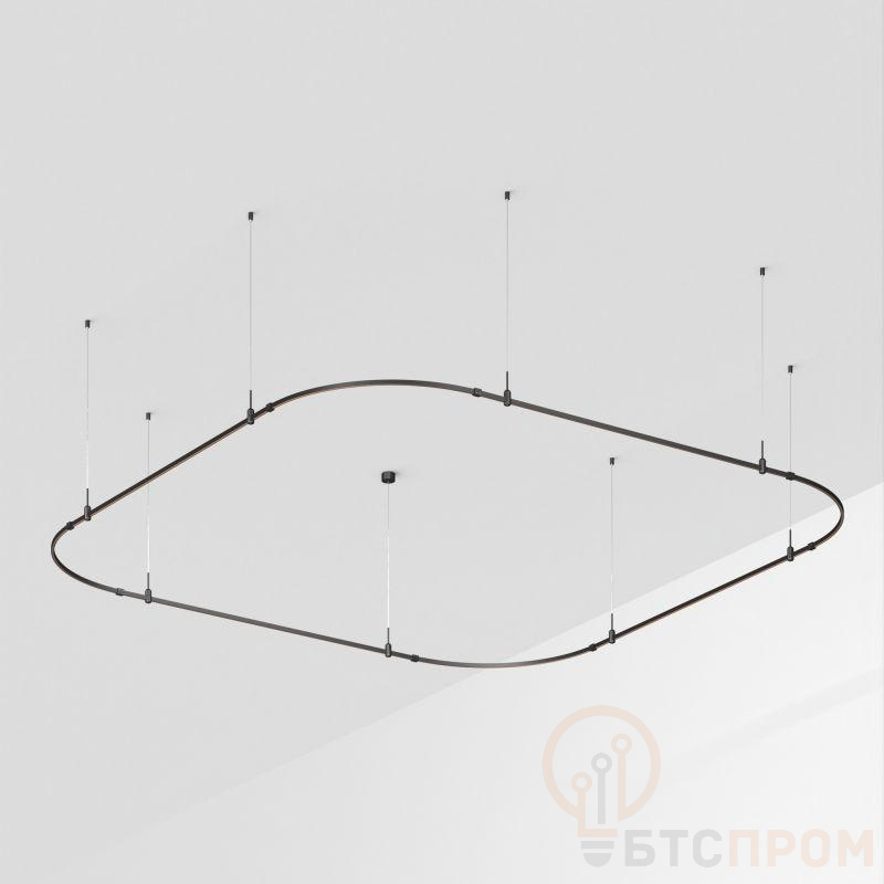Подвесная конструкция APRIORI, форма закруглённый квадрат. В комплекте треки с аксессуарами и гибкими подвесами. DC48V. Материал алюминий, цвет черный. Размер ДxШxВ: 3500x3500x22мм. Светильники и источники питания приобретаются отдельно.