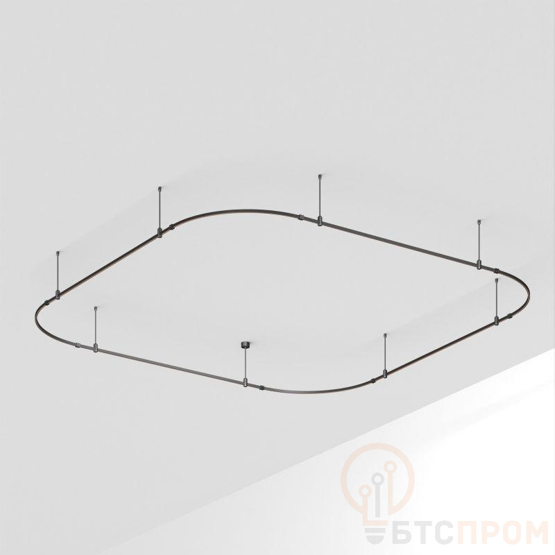 Подвесная конструкция APRIORI, форма закруглённый квадрат. В комплекте треки с аксессуарами и жесткими подвесами длиной 400мм. DC48V. Материал алюминий, цвет черный. Размер ДxШxВ: 3500x3500x22мм. Светильники и источники питания приобретаются отдельно.