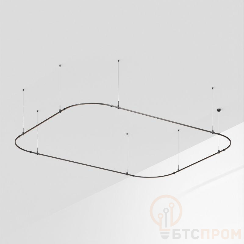 Подвесная конструкция APRIORI, форма закруглённый прямоугольник. В комплекте треки с аксессуарами и гибкими подвесами. DC48V. Материал алюминий, цвет черный. Размер ДxШxВ: 4500x3500x22мм. Светильники и источники питания приобретаются отдельно.