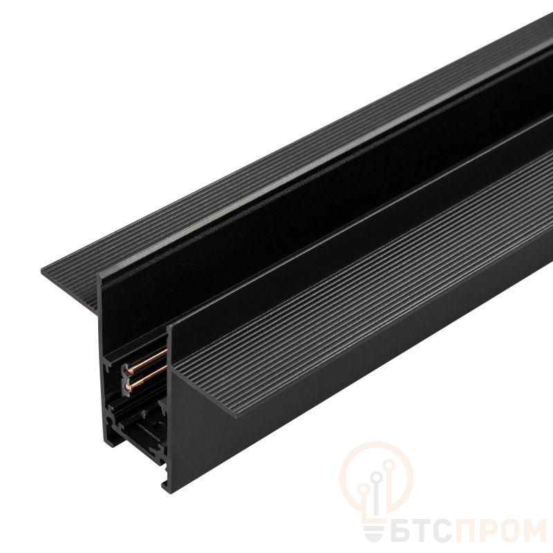 Встраиваемый магнитный трек ORIENT с фланцем, длина 1000мм. DC48V. Материал алюминий, цвет черный. Заглушки в комплект не входят. Размер ДxШxВ: 1000x26.2x52.2мм. Размер (с учетом заглушек и фланцев) ДxШxВ: 1005x70x52.2мм. Подходит под ГКЛ <12мм.