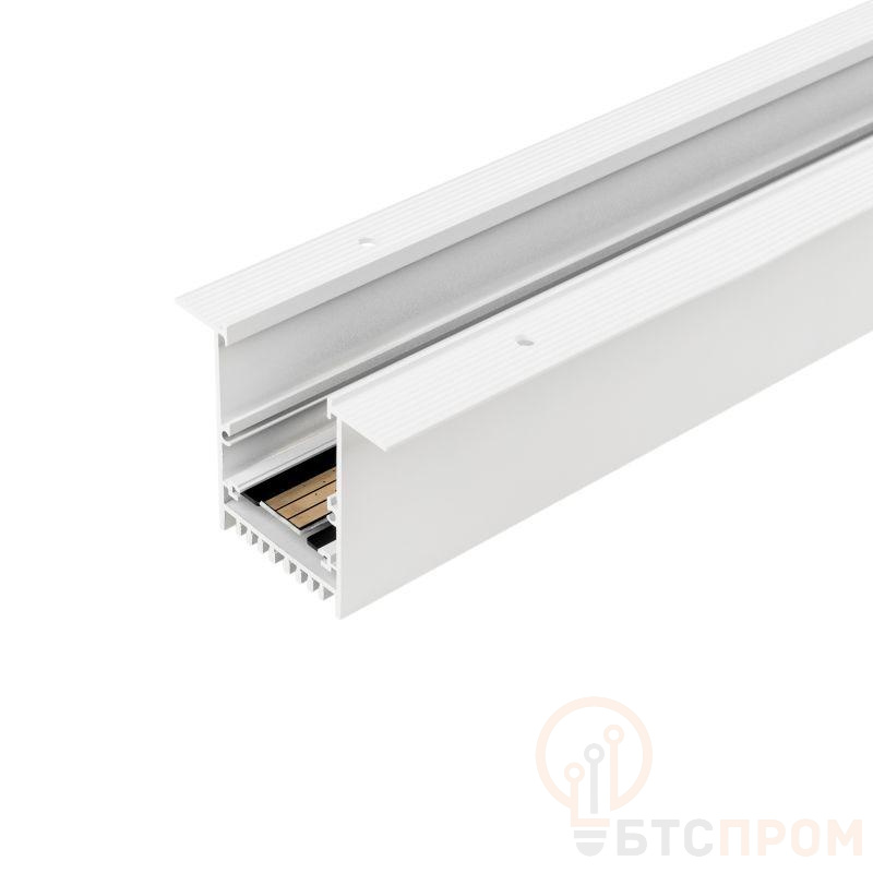 Встраиваемый магнитный трек с фланцем MAG-TRACK-4560-F-3040 (WH) длиной 3040 мм. Напряжение питания 24 В. Две заглушки в комплекте. Установка в монтажное отверстие (ДхШхВ) 3015х50х70 мм.