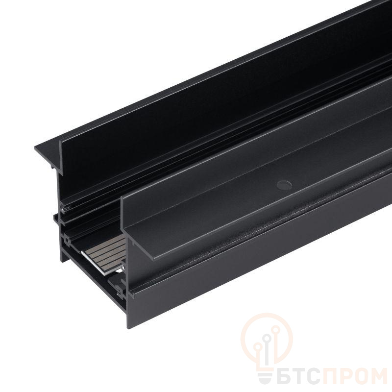 Встраиваемый магнитный трек с фланцем для монтажа в гипсокартонный потолок, длина 3000 мм. DC24V. Материал алюминий, цвет черный. Две заглушки в комплекте. 5 токопроводящих дорожек (возможность управления по DALI). Размер ДxШxВ: 3000x75x60 мм. Размер (с учетом заглушек и фланцев) ДxШxВ: 3040x75x60 мм. DC24V.