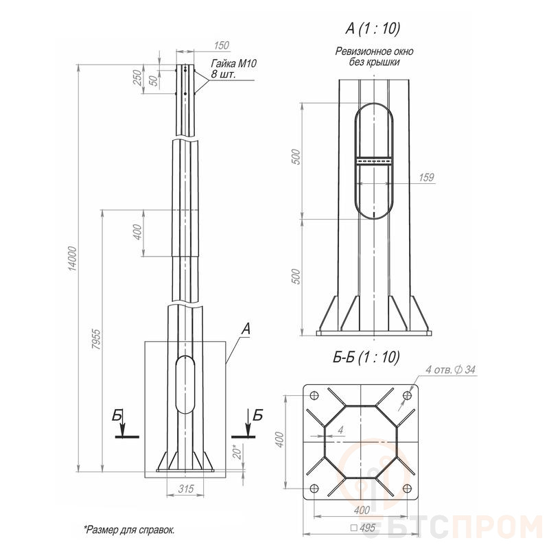 Опора ОГКф-14.0(2)(К495-400-4х34) оцинк. Пересвет 00-000737 фото в каталоге от BTSprom.by