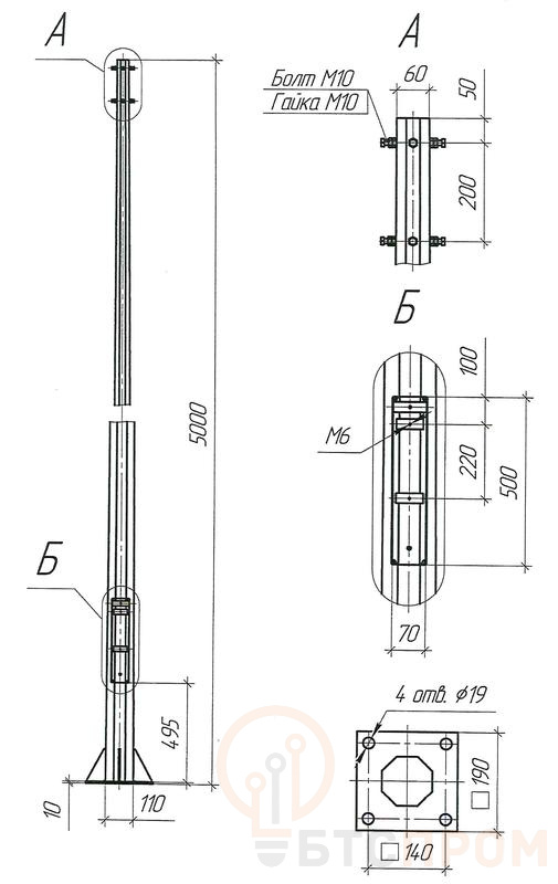 Опора ОГКф-5 (3мм 60/110 фл.190х10 мц. 140 отв. 19х4) гор. оцинк. UMECON МК 90056 фото в каталоге от BTSprom.by