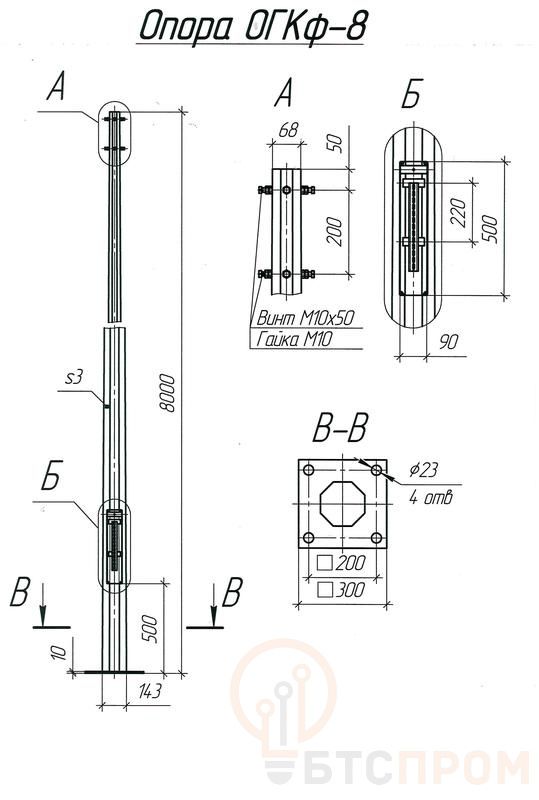 Опора ОГКф-8 (3мм 68/143 фл.300х10 мц. 200 отв. 23х4) гор. оцинк. UMECON МК 90313 фото в каталоге от BTSprom.by
