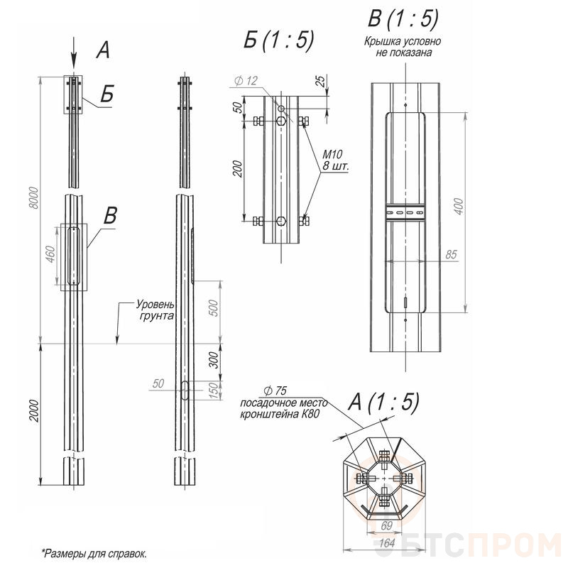 Опора ОГКлп-8.0-10 оцинк. Пересвет 00-002978 фото в каталоге от BTSprom.by