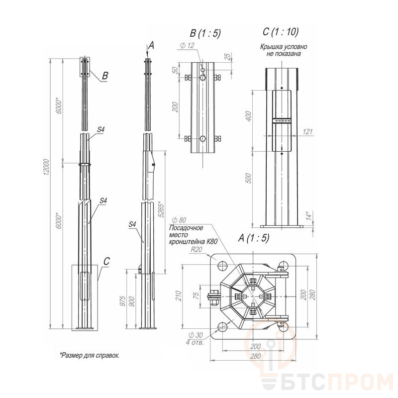 Опора ОГКс-12.0(К280-200-4х30)-ц Пересвет 00-000352 фото в каталоге от BTSprom.by