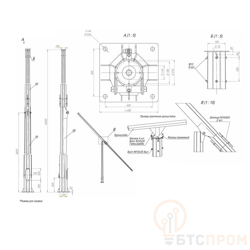 Опора ОГКс-14.0(2)(К495-400-4х34) оцинк. Пересвет 00-003054 фото в каталоге от BTSprom.by