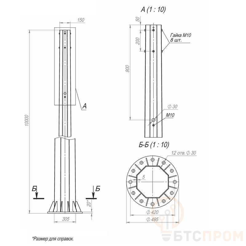 Опора ОГСф-1.0-10.0(Д495-420-12х30)-01-ц Пересвет 00-003307
