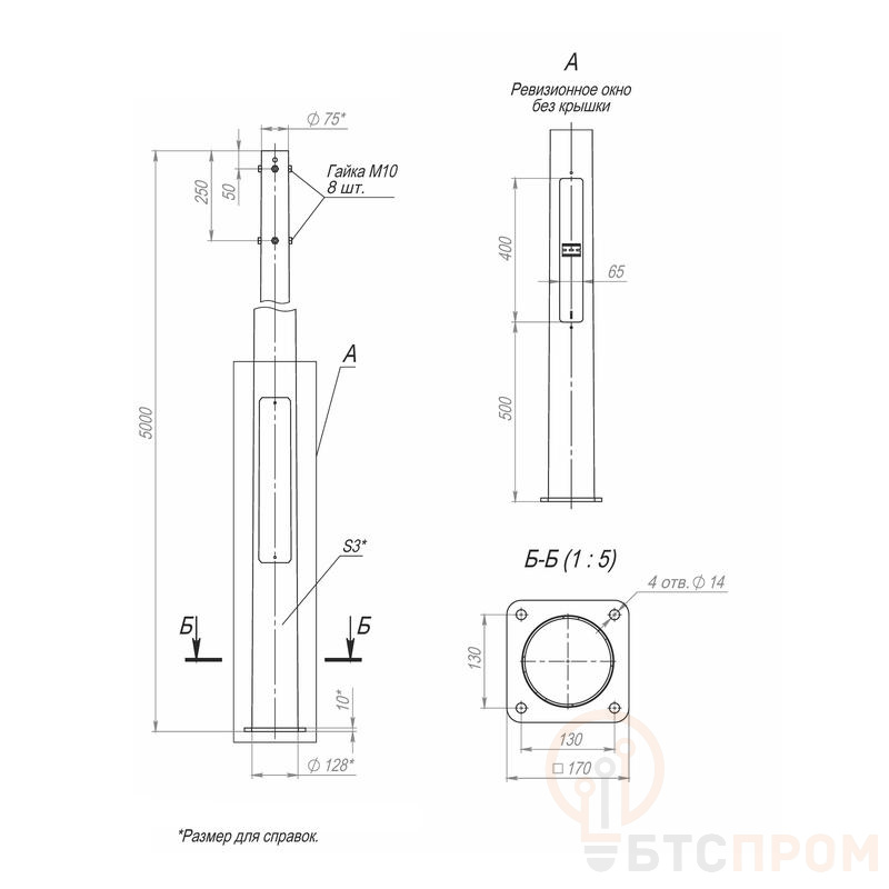 Опора ОККф-5.0(К170-130-4х14)-ц В00001889 от производителя "Пересвет" — это надежная металлическая силовая конструкция, предназначенная для монтажа и стабилизации наземных столбов освещения и других инженерных сооружений. Изделие характеризуется высокой механической прочностью и устойчивостью к статическим и динамическим нагрузкам, что обеспечивает длительный срок службы всей конструкции.