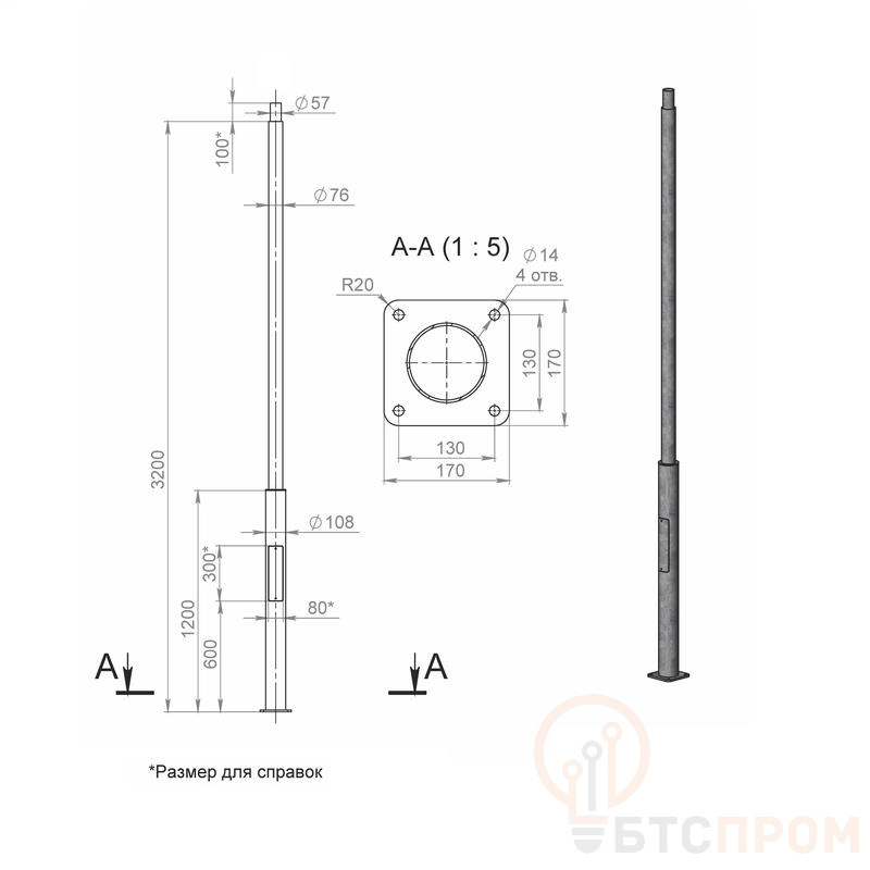 –Опора ОП1ф-3.2-108/76/т57-(К170-130-4х14) оцинк. Пересвет В00008331
