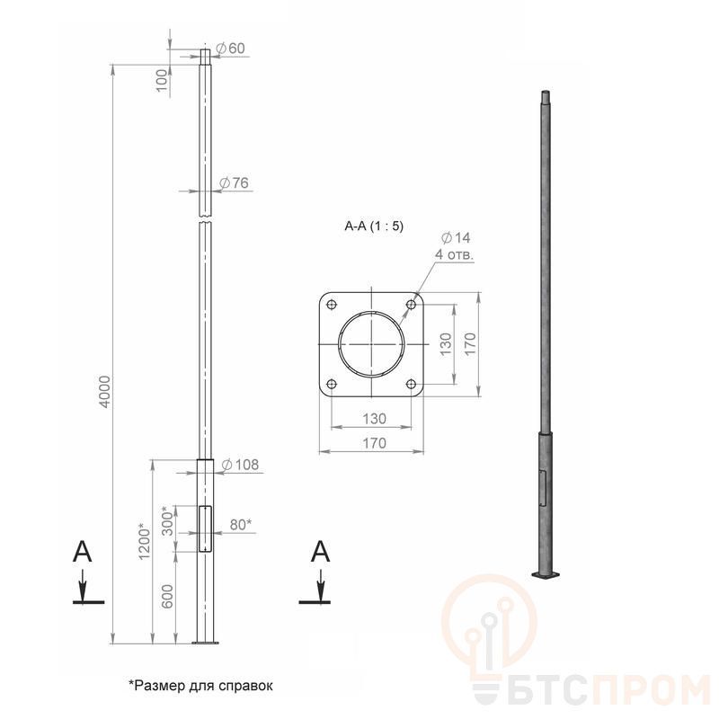 Опора ОП1ф-4.0-108/76/т60-(К170-130-4х14)-по 9005 муар Пересвет В00007136 фото в каталоге от BTSprom.by