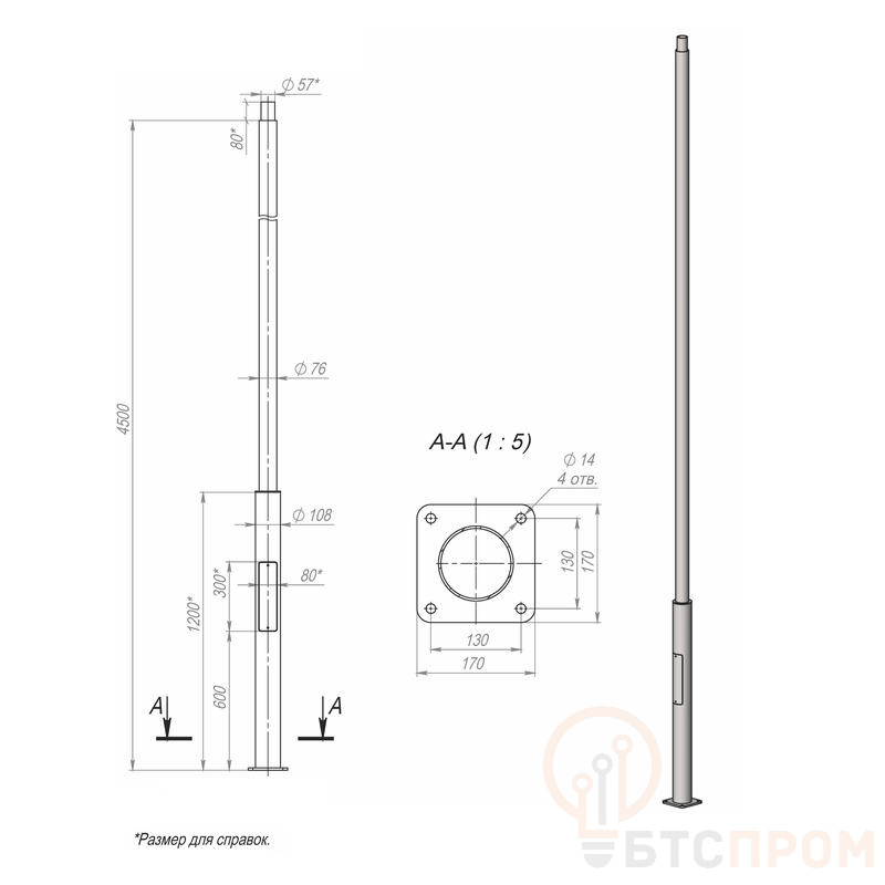 Опора ОП1ф-4.5-108/76/т57-(К170-130-4х14) оцинк. Пересвет 00-000281 фото в каталоге от BTSprom.by